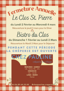 Fermeture annuelle 2026