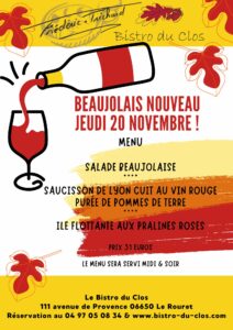 Home Fêtez le Beaujolais Nouveau au Bistro du Clos, le jeudi 20 Novembre